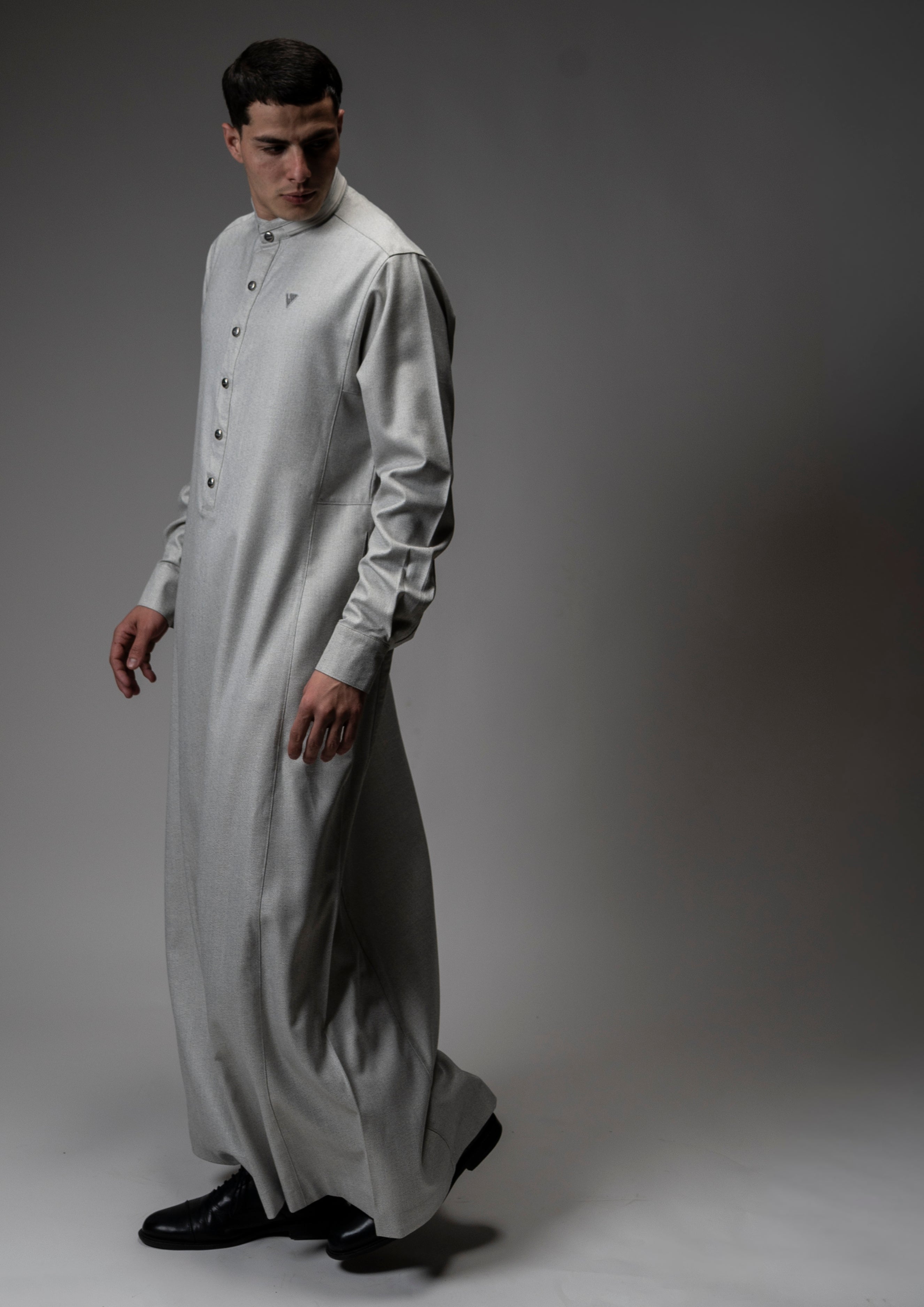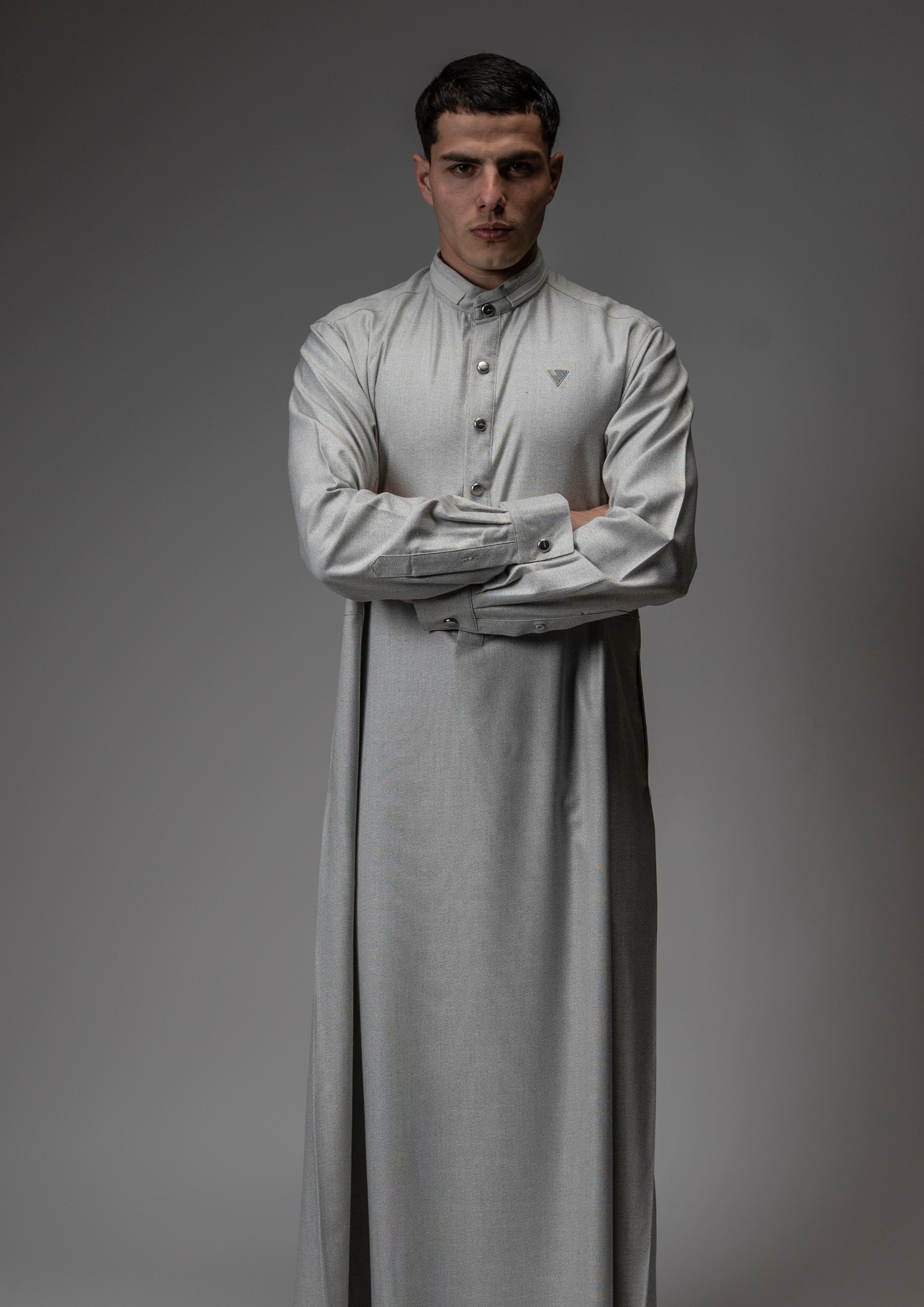 The AAR2648 Al Ameer Thobe reflects refined simplicity and modern elegance. Crafted from premium textured fabric, it features a clean mandarin collar, polished button detailing, and a subtle embroidered Al Ameer emblemfor a discreet, elevated finish. Designed for comfort and everyday sophistication, this piece embodies Arabian heritage refined through British craftsmanship.